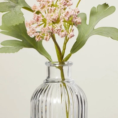 The Faux Blush Pink Sedum Flower Arrangement from Hearth & Hand™ with Magnolia makes a fresh-looking addition to any space. This arrangement features faux blush pink sedum flowers and greenery that are perfect for any home or office space. The clear bottle is made from glass with artificial water for a clean look that pairs well with a variety of decor, and the artificial construction makes it maintenance free.
