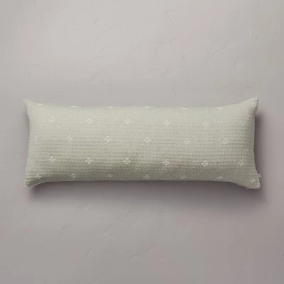 Elevate your living room decor with this Diamond Jacquard Lumbar Bed Pillow from Hearth & Hand™ with Magnolia. This decorative lumbar pillow is crafted from jacquard fabric with soft filling for cozy comfort. Plus, it’s designed with a removable cover with a hidden zipper for easy cleaning. Showcasing a textured design with tiny contrasting diamond patterns, you can toss it on your sofa or bed in coordination with other accent pillows for eye-catching flair.