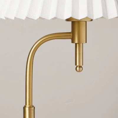 Light up your bedside, work desk or reading nook with this 22-Inch Pleated Shade Metal Arch Table Lamp from Hearth & Hand™ with Magnolia. Designed with a pedestal base, this practical desk task lamp features a brass finish that’s easy to coordinate with any decor. The cream-colored pleated shade adds a classic touch, and the one-way turn-knob rotary switch makes it easy to turn on and off.