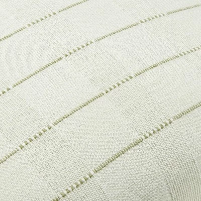 - Yarn-dyed light green stripes on cream backdrop