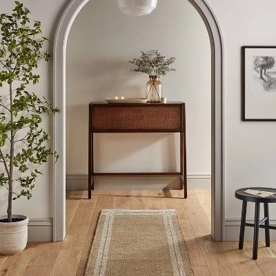 This Border Plaid Handmade Jute Woven Area Rug from Hearth & Hand™ with Magnolia is a versatile rug that you can use in any space. Made from a jute-cotton blend, this runner-style area rug features a plaid border stripe pattern in tan and cream hues for a timeless look. Best of all, the flat pile height makes it suitable for high-traffic areas like your living room or entryway.