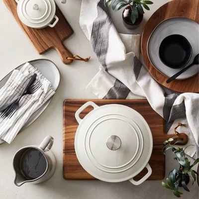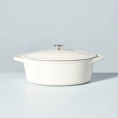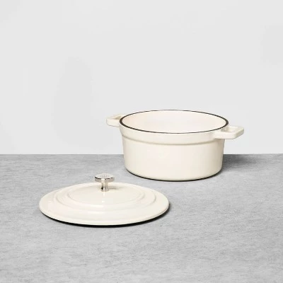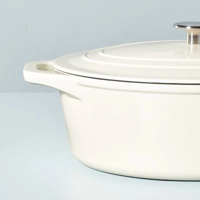 From soups and stews to risotto, pasta and one-pot meals, prepare savory and satisfying dishes for your family in the Enameled Cast Iron Dutch Oven from Hearth & Hand™ with Magnolia. Made from sturdy cast iron with an enamel coating, it helps retain heat for long braises and simmers, and comes with a matching lid to help keep heat in. Great for use on a variety of cooking surfaces including induction, it features two side handles for easy carrying, while the knob at the lid makes it easy to lift on and off. With the beautiful enameled finish of this Dutch oven, it’s also great for displaying in your open kitchen storage when not in use.