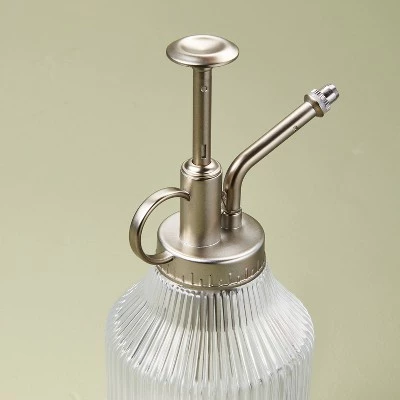 Make watering your plant a breeze with this Ribbed Clear Glass Plant Mister from Hearth & Hand™ with Magnolia. Made of break-resistant ribbed clear glass body for years of use, the portable plant mister features an leak- and rust-resistant plastic pump that presses down to gently spray your plants with water, helping them grow. Ideal for general household use, the pump mister is a great-looking gift for green-thumbed garden enthusiasts.