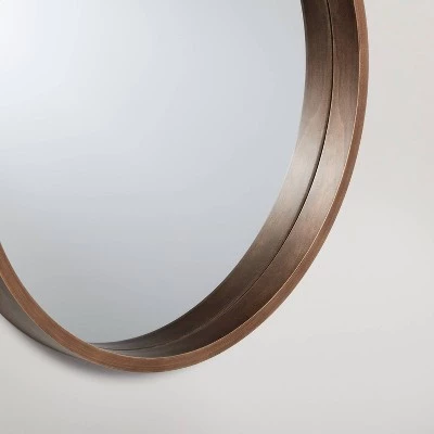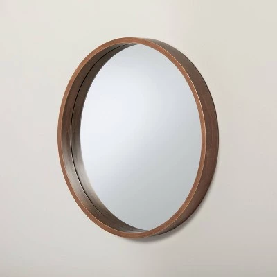 Make a statement accenting the wall of your home with this Round Wood Framed Wall Mirror from Hearth & Hand™ with Magnolia. This round mirror showcases a framed design that helps add a rustic touch to your space. Whether you use this framed mirror in your bathroom, living room or above your fireplace mantel, you’ll love warm and welcoming style it brings.