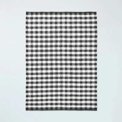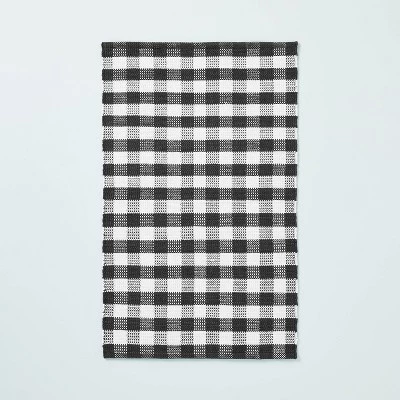 Spruce up your space in comfy style with this Textured Gingham Indoor/Outdoor Woven Area Rug from Hearth & Hand™ with Magnolia. This handmade accent rug features a black-and-white textured gingham pattern that is sure to elevate your space while easily matching with a variety of settings. Designed with a flat pile height that is easy to clean and maintain, this weather-resistant woven rug is suitable for placement in even high-traffic areas like your entryway or patio.