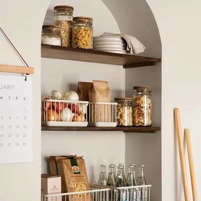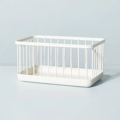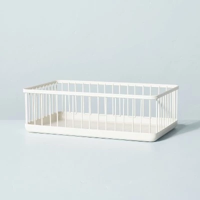 The Metal Wire Storage Basket from Hearth & Hand™ with Magnolia brings handy organization to your space and keeps things neat and accessible. This metal basket has an open-wired construction that is great for keeping tabs on what’s inside and lets you remove and replace items easily, while its solid bottom provides a secure base for snack packs, craft supplies and other household items. It’s finished in a matte cream hue that will look great and go with any type of home decor. The multipurpose storage basket can be used in any room of your home to declutter your space by keeping magazines, books and more nicely arranged.