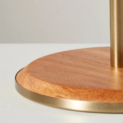 Store and display your drinkware in style with this Wood & Brass Mug Tree from Hearth & Hand™ with Magnolia. The freestanding mug holder is great for keeping your favorite mugs within easy reach on the kitchen counter, coffee station or bar cart. It boasts a sleek brass-finish pole equipped with six hooks, standing gracefully on a brown wooden round pedestal within a brass metal frame.